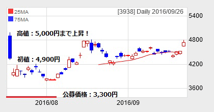 | 初値上昇率 | 1,600円(48.5%) |
